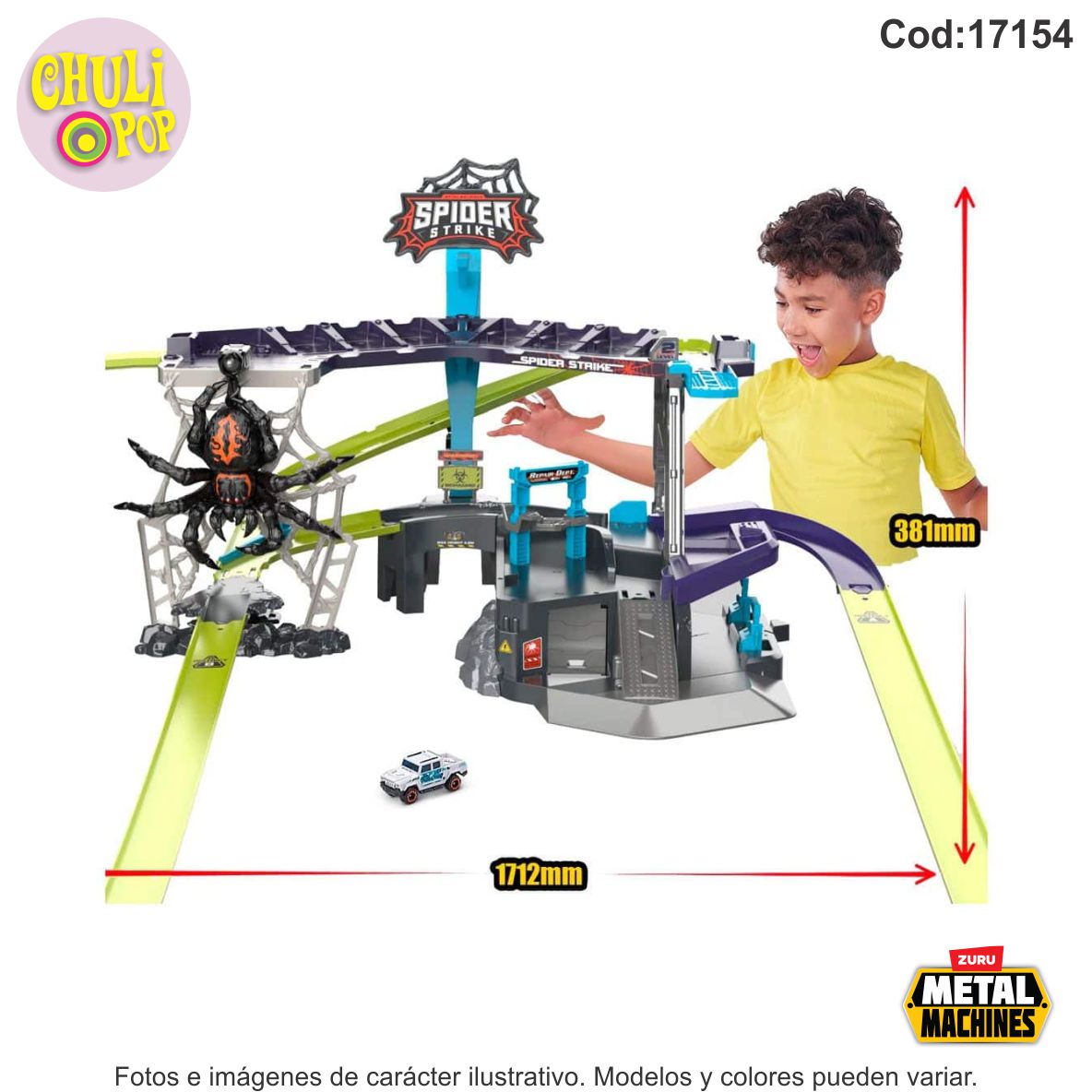Disfruta del exclusivo auto ‘salvaje’ y agrégalo a tu colección Metal Machines. METAL MACHINES SPIDER STRIKE: lucha contra la monstruosa araña atacante.