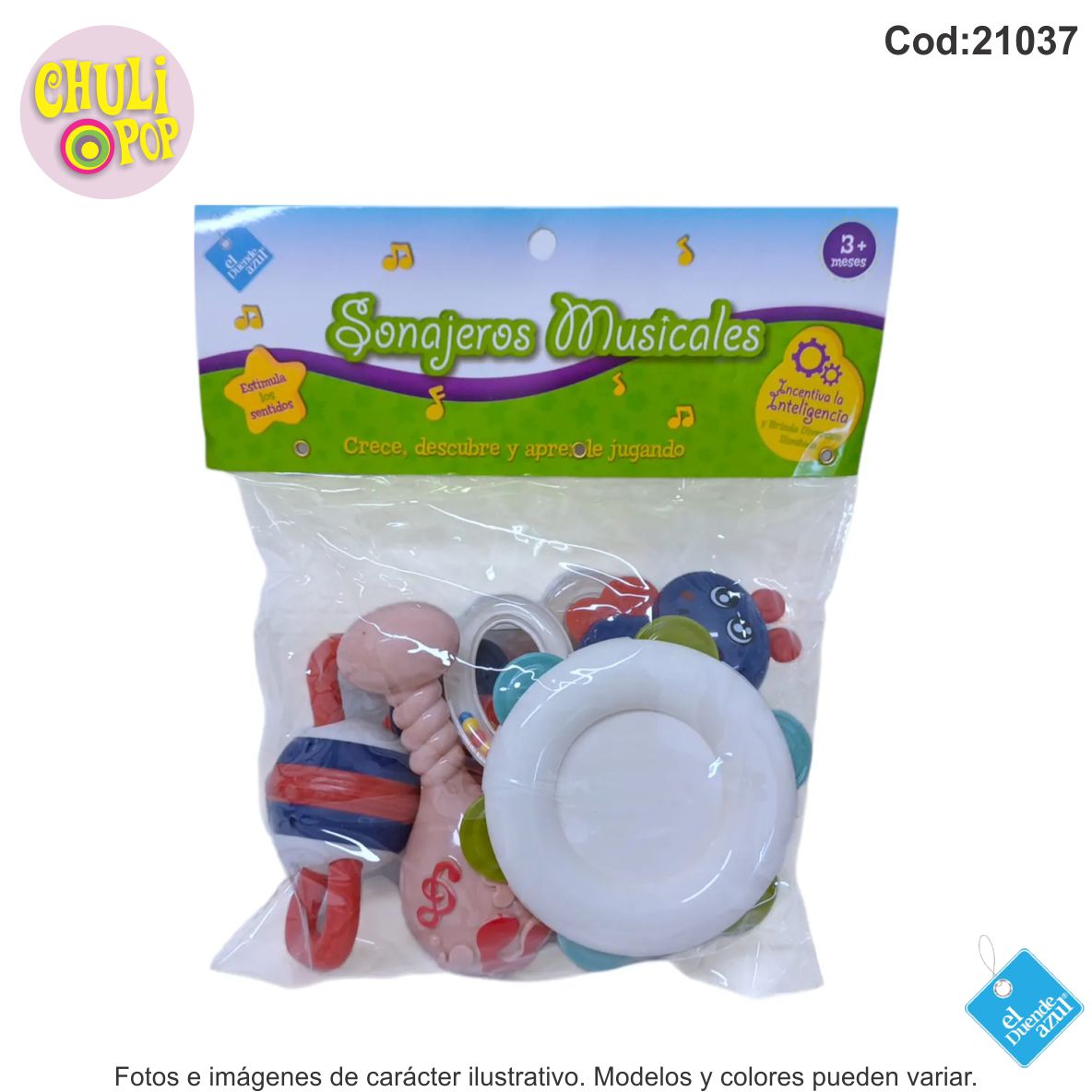 ¡Que comience la música y la diversión con este set de instrumentos y sonajeros para bebés! Este colorido set incluye una variedad de instrumentos diseñados especialmente para las manitos curiosas de los más pequeños. Cada pieza es fácil de agarrar y ayuda a estimular sus sentidos, mejorando la coordinación y el ritmo mientras descubren sonidos y movimientos nuevos. Ideal para jugar en solitario o en grupo, este set musical convierte cada momento en una alegre experiencia de aprendizaje. ¡El primer paso hacia su amor por la música comienza aquí!