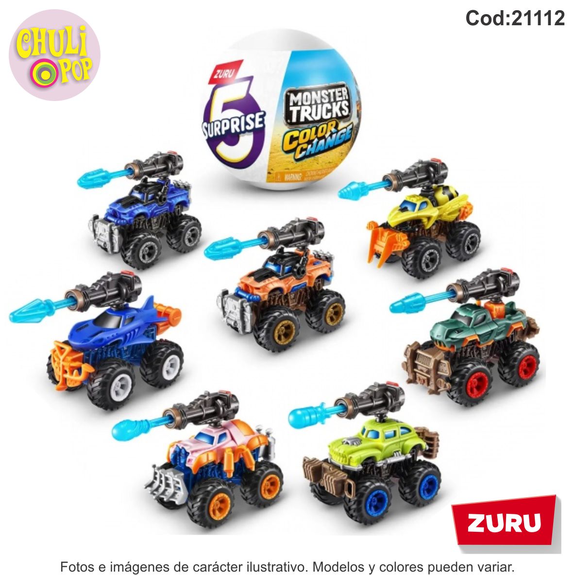 ¡Prepárate para la emoción y la sorpresa con el 5 Surprise Monster Truck con 7 modelos diferentes! Coleccioná estos increíbles camiones monstruo que cambian de color y personalízalos para crear tu vehículo definitivo.