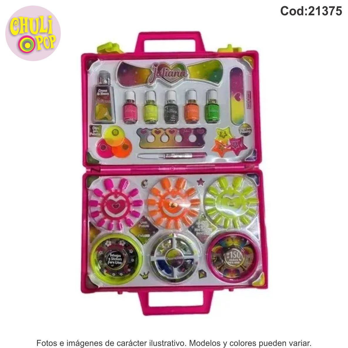 Incluye una variedad de esmaltes y calcomanías que permiten a las niñas personalizar sus uñas de manera única. Con el personaje Juliana como inspiración, cada sesión de juego se convierte en una aventura de belleza y autoexpresión.